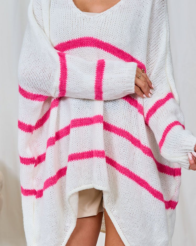 - Dámsky dlhý sveter z príjemného pleteného materiálu v pruhovanom vzore. Sveter bez zapínania. Ideálny prvok vášho šatníka na doplnenie jesenného stylingu! UPOZORNENIE: Presnosť merania (+/-) 1 cm.