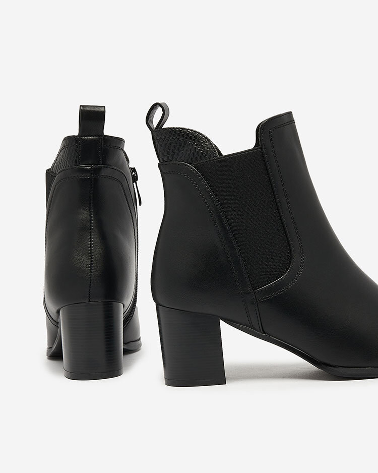 - Štýlové dámske nízke čižmy na podpätku. Zvršok je vyrobený z ekologickej kože, vnútro je zateplené kožušinou. Obuv sa na bokoch zapína na zips. Skvelá voľba na jeseň!