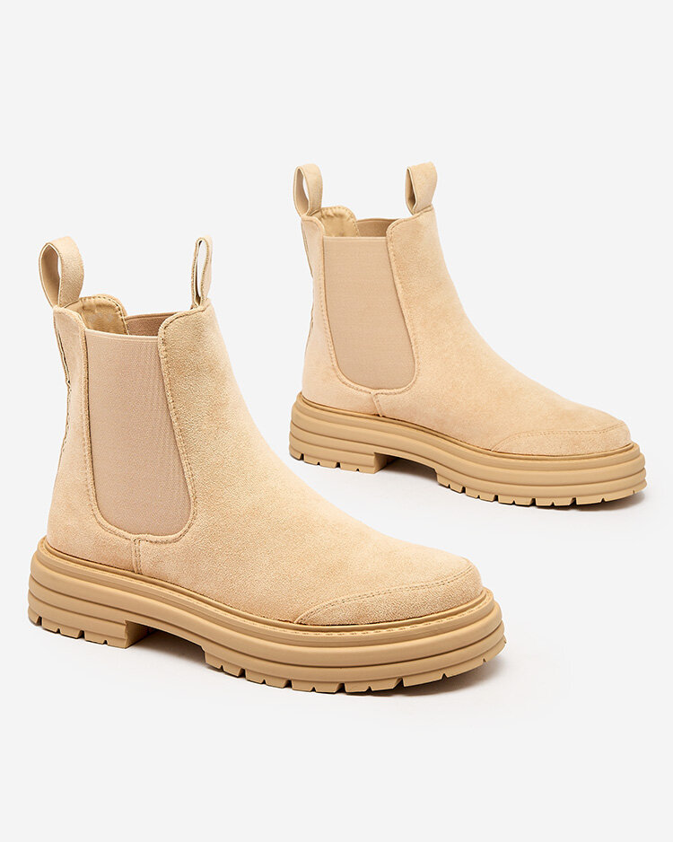 Royalfashion Béžové dámske čižmy s ozdobným remienkom Loffdo