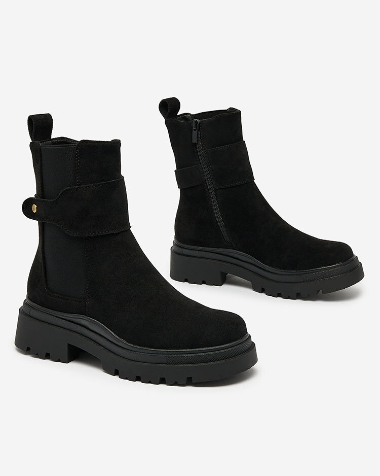 Royalfashion Čierne dámske čižmy s ozdobným remienkom Doasa