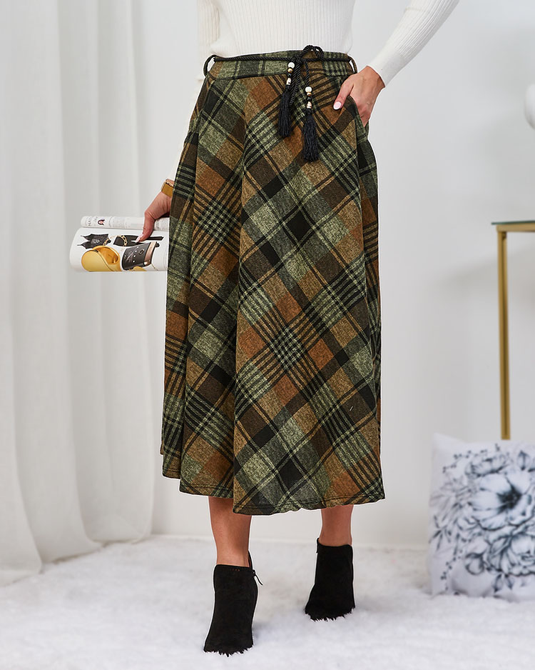 - Dámska midi sukňa z mäkkej károvanej látky. Model má navyše uviazaný pás s perlami a dve vrecká. Ideálny základ pre mnohé jedinečné outfity! UPOZORNENIE: Presnosť merania (+/-) 1 cm.