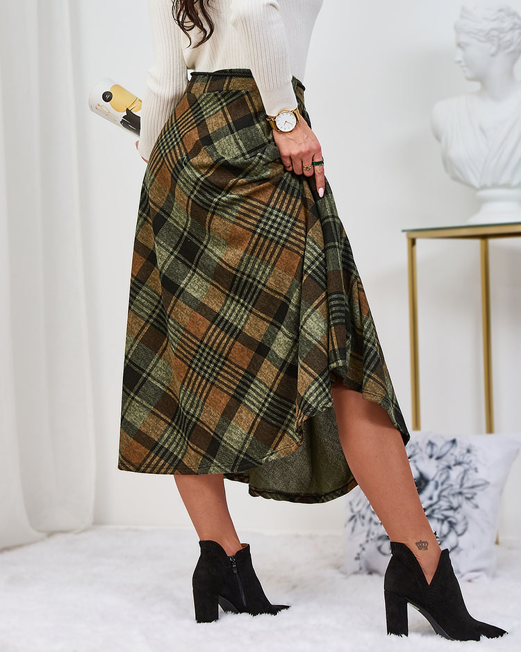 Royalfashion Svetlohnedá a zelená dámska károvaná midi sukňa
