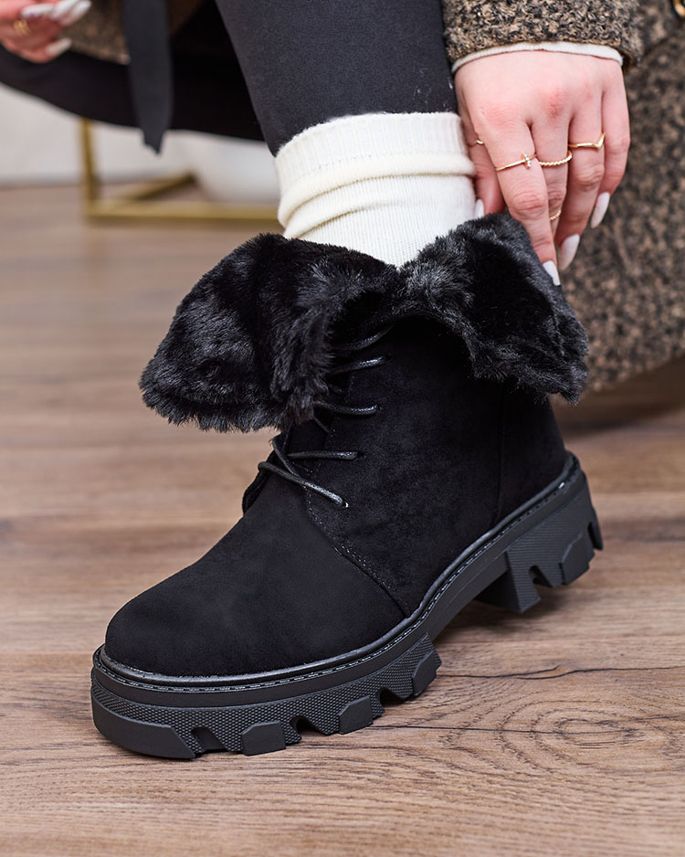 • Štýlové čižmy z ekokože. Čižmy sú šnurovacie, majú hrubšiu gumovú podrážku a stred vyplnený mäkkou kožušinou. Perfektné na jeseň!