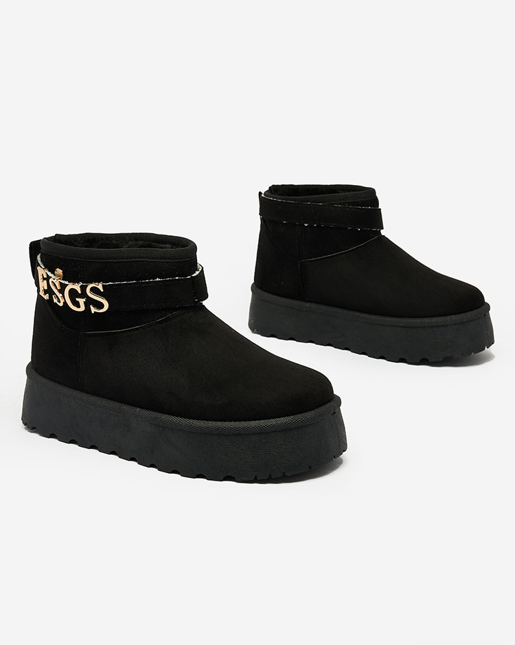 - Mega štýlové dámske zateplené snehule z ekologickej semišovej kože. Majú stred vyplnený kožušinou a'la ovčia koža. Okrem toho odnímateľné eso zdobené nápisom. Topánky na vysokej platforme - ideálne k zimným ležérnym outfitom!