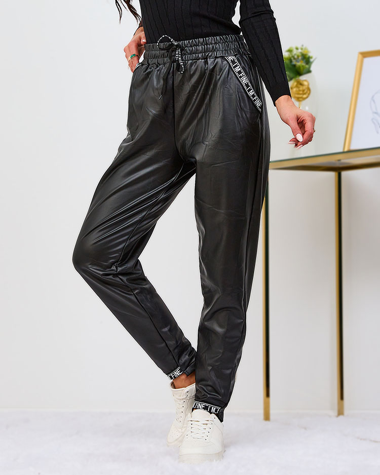 Royalfashion Voľné dámske nohavice z ekokože v čiernej farbe