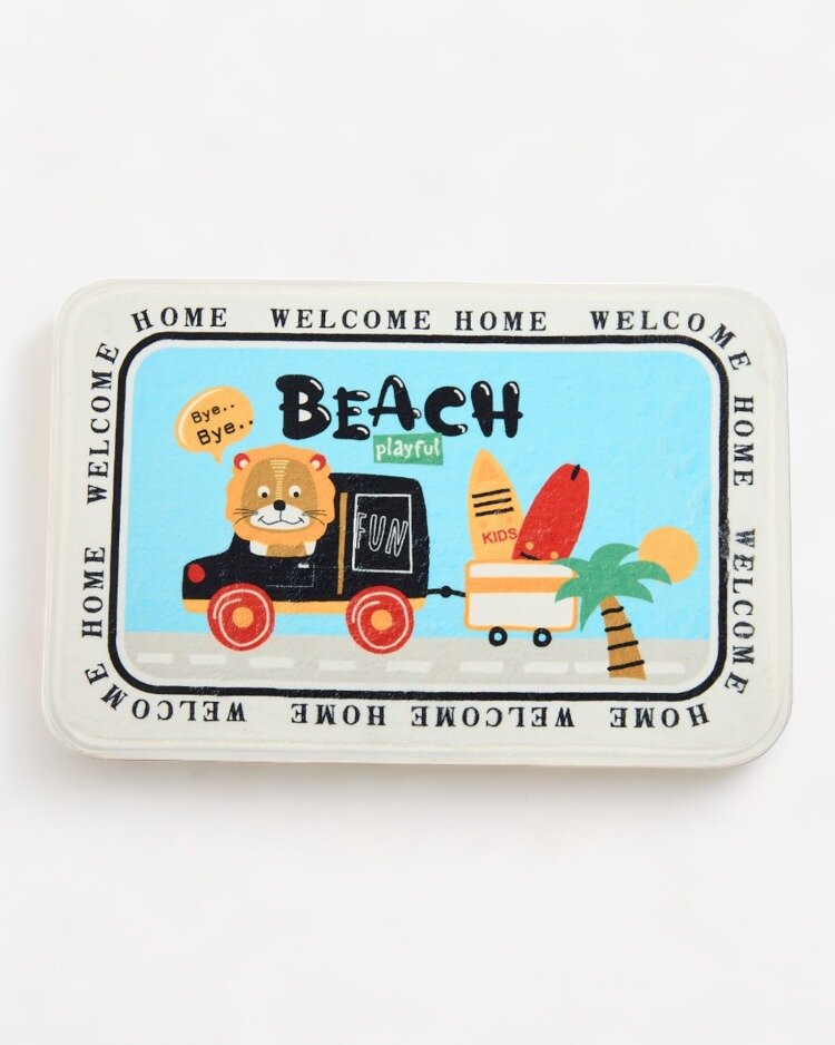 - Malá farebná rohožka s krátkym vlasom a nápisom "Vitajte doma". Je mäkký a jemný, vďaka čomu je mimoriadne príjemný na dotyk. Ďalšou výhodou koberčeka je jeho protišmyková spodná strana.