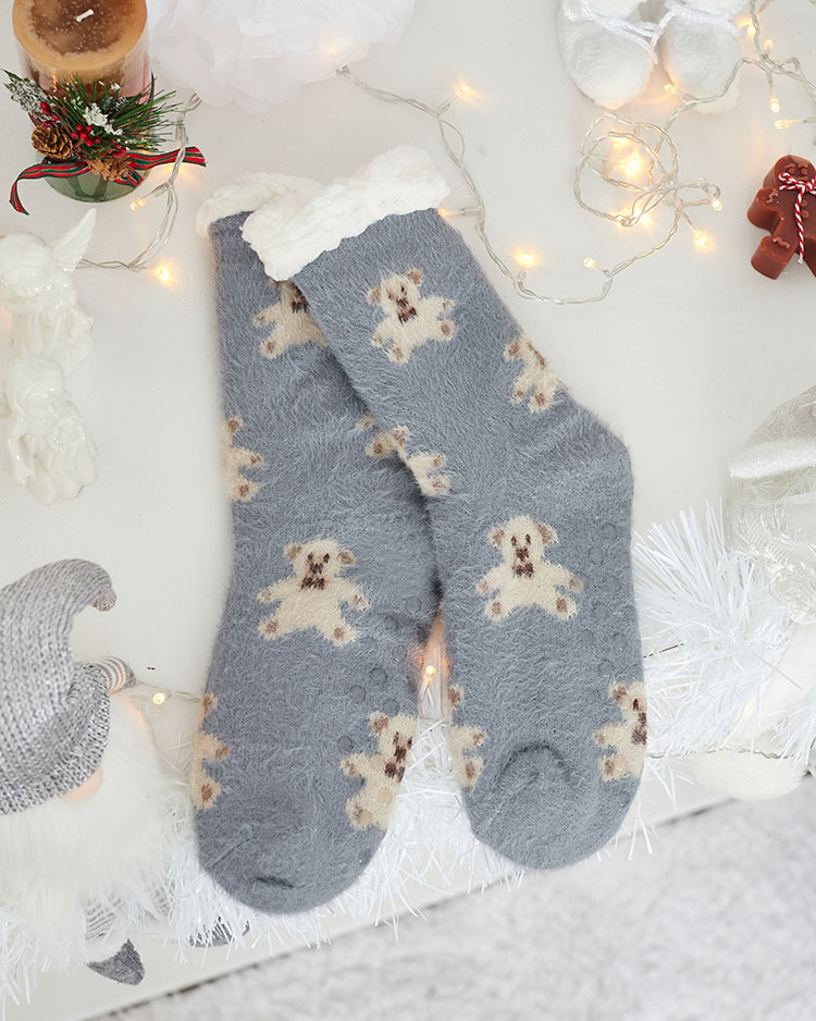 Royalfashion Zateplené sivé dámske ponožky s medvedíkmi