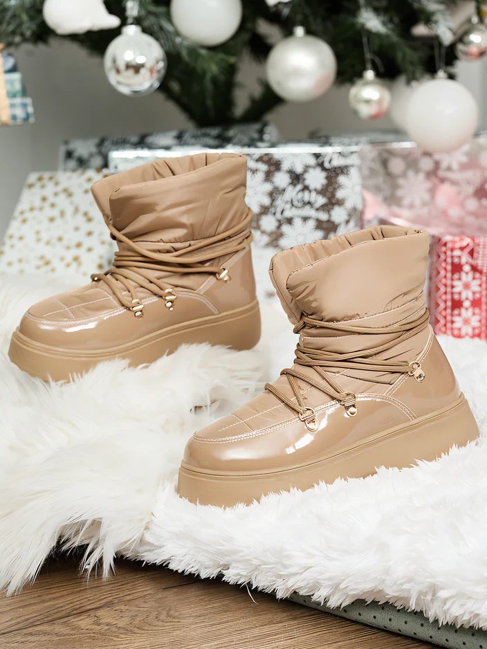 - Nadčasové dámske snehové čižmy. Zvršok je vyrobený z materiálu a'la cerata a vložky z lakovanej ekokože. Vnútri zateplenie v podobe kožušiny, šnurovacia obuv. Ideálne na chladnejšie obdobie!