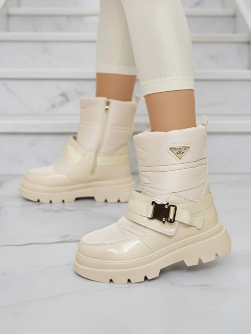 • Dámske snehule so zvrškom z materiálu a'la cerata a eko lakovanej kože. Zateplenie vo vnútri v podobe umelej kožušiny, topánky sa zapínajú na zips a suchý zips. Ideálne na chladnejšie obdobie!