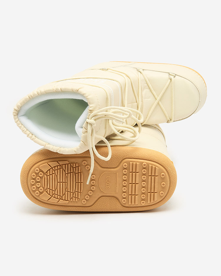 - Dámske čižmy a'la snow boots. Vyrobené z tkaniny zateplenej penou a s vložkami z ekokože. Model so šnurovaním, na vrchnej časti zvršku má lem. Ideálna voľba na zimný styling!