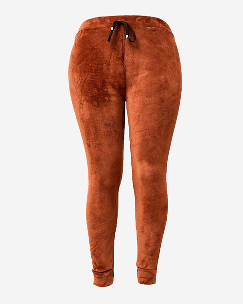- Zateplené tepláky s potrubím z mäkkej, ľahkej tkaniny a'la velúr. Elastický pás v páse umožňuje, aby nohavice dokonale sedeli. Okrem toho sú zdobené bočnými pruhmi.