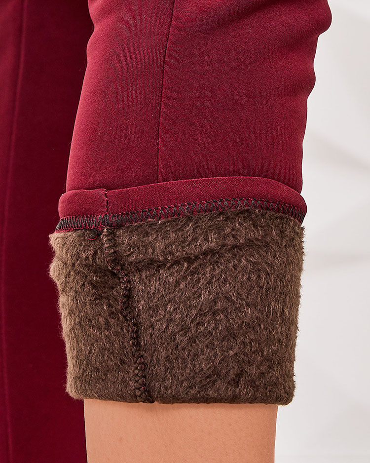 - Štýlové dámske tegingové nohavice, vyrobené zo strečového materiálu, zateplené kožušinou. Model má široký elastický pás a 2 nakladané vrecká na zadnej strane. Ozdobené sú gombíkmi. Must have tejto sezóny!