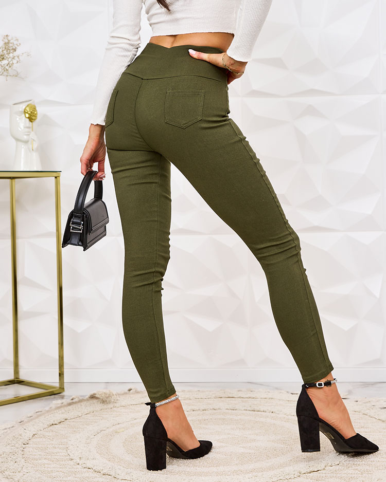 - Nadčasové dámske tegingové nohavice, vyrobené z elastického materiálu. Model má široký elastický pás a 2 vsadené vrecká na zadnej strane. Ozdobené sú viazaním na gombíky. Ideálne na každodenné nosenie!