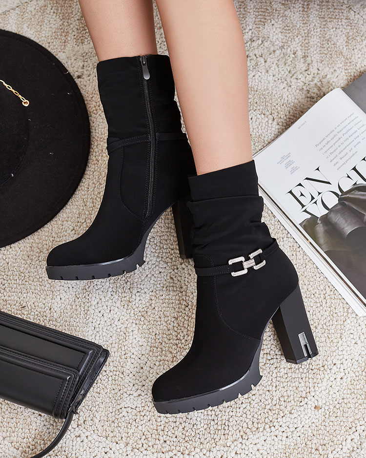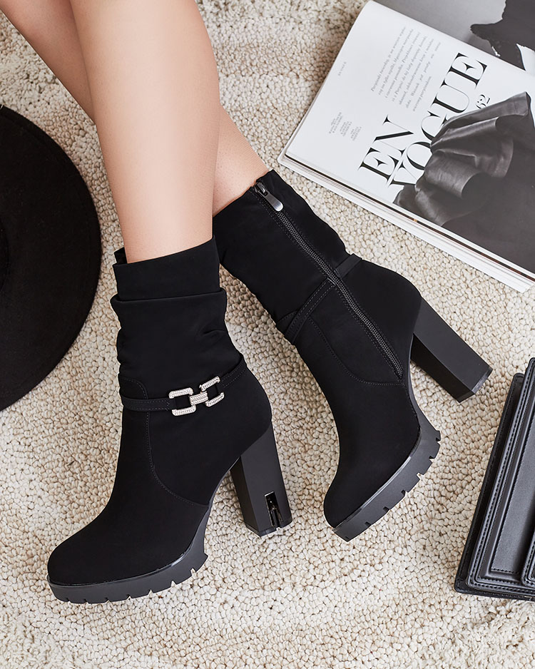 • Štýlové dámske čižmy z matnej nubukovej ekologickej kože sú ideálne na chladnejšie dni. Zvršok sa na boku zapína na zips, vnútri je zateplený mäkkou kožušinou. Model na vyššom podpätku a okrúhlom nose.