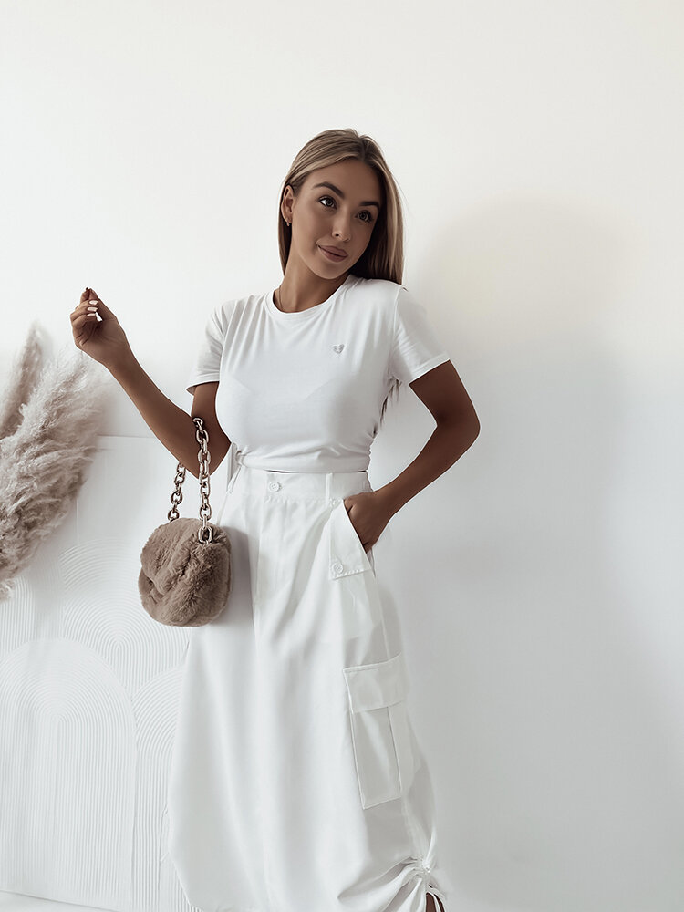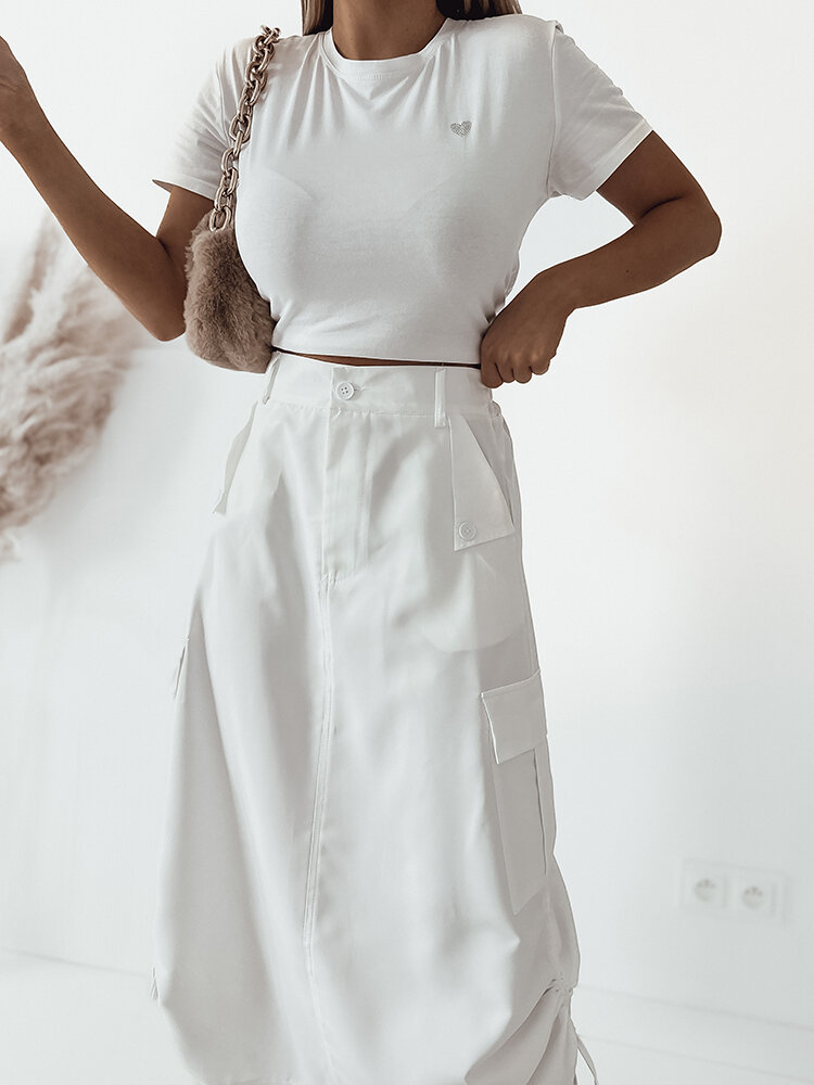 • Dámska midi sukňa z jemnej tkaniny. Model má navyše dve vrecká a gombík a elastický pás. Ideálny základ pre mnoho jedinečných outfitov! UPOZORNENIE: Presnosť merania (+/-) 1 cm.
