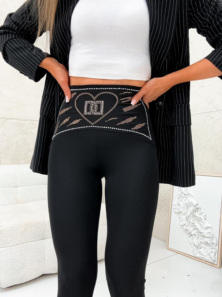 - Štýlové legíny z elastického materiálu. Široký elastický pás zdobený zirkónmi poskytuje pohodlie pri nosení. Ideálne na aktívny deň!