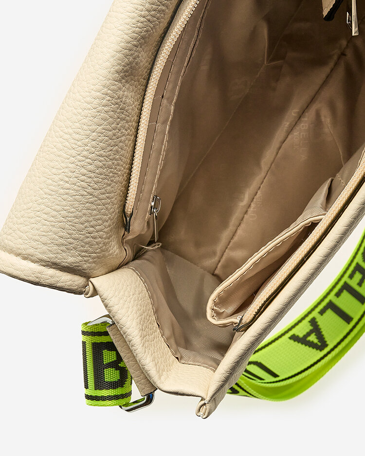 - Jedinečná malá dámska kabelka z ekokože s neónovo žltým nastaviteľným popruhom. Model má 4 vrecká. Kombinácia elegancie a športového štýlu!