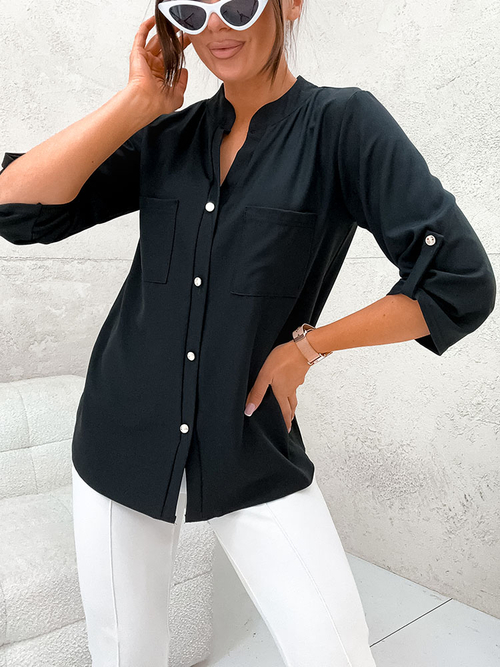 - Klasická dámska blúzka a'la košeľa s dlhými ohrnutými rukávmi. Model s golierom, zapína sa na gombíky. Musí byť v šatníku každej ženy!