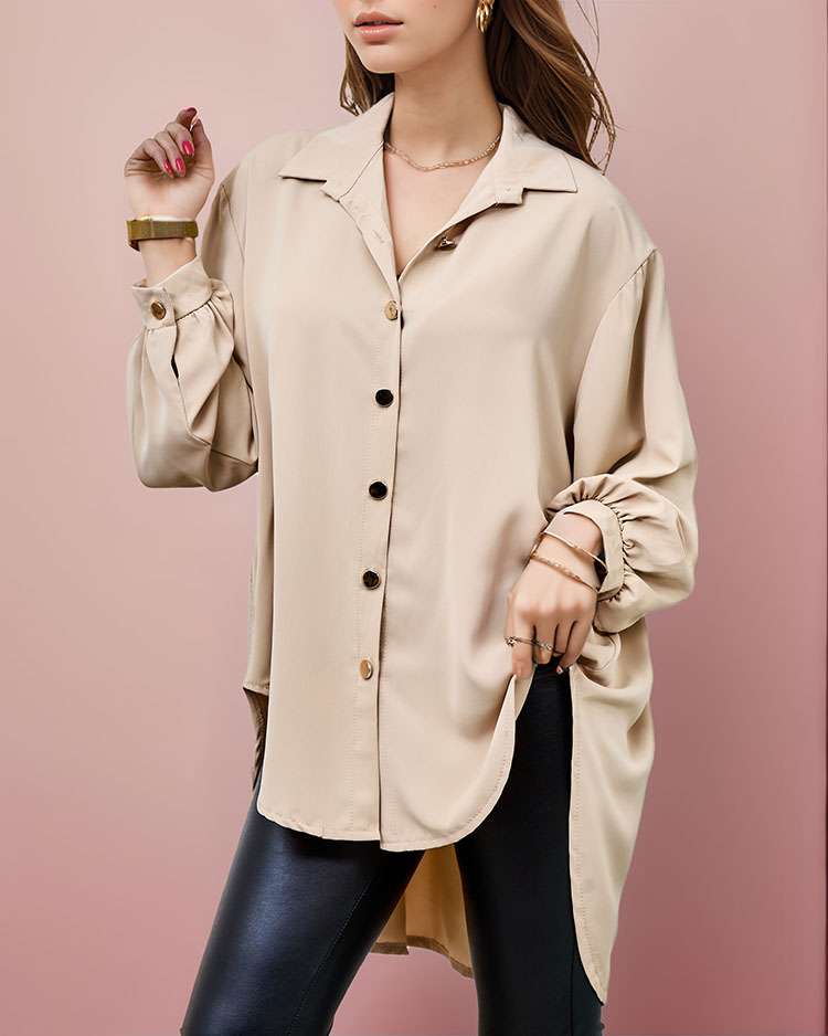 - Senzačná dámska košeľa s dlhými rukávmi. Model s golierom sa zapína na gombíky. Musí byť v šatníku každej ženy!