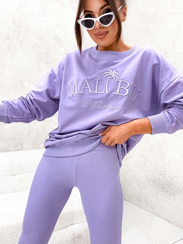 - Originálna dámska mikinová súprava z príjemného materiálu. Mikina s dlhými rukávmi bez kapucne a nápisom patch. Rebrované legíny so širokým elastickým pásom.
