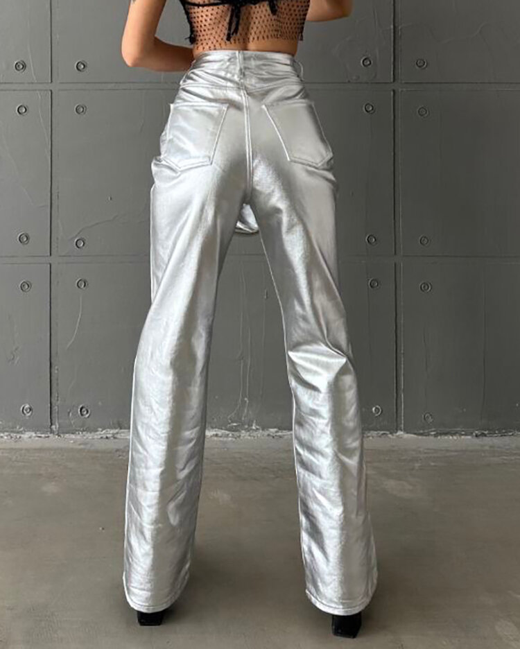 - Dámske široké nohavice s vysokým pásom, zapínanie na zips a gombík. Majú 4 zasúvacie vrecká. Všetky sú zakončené kovovým efektom. UPOZORNENIE: Presnosť merania (+/-) 1 cm.