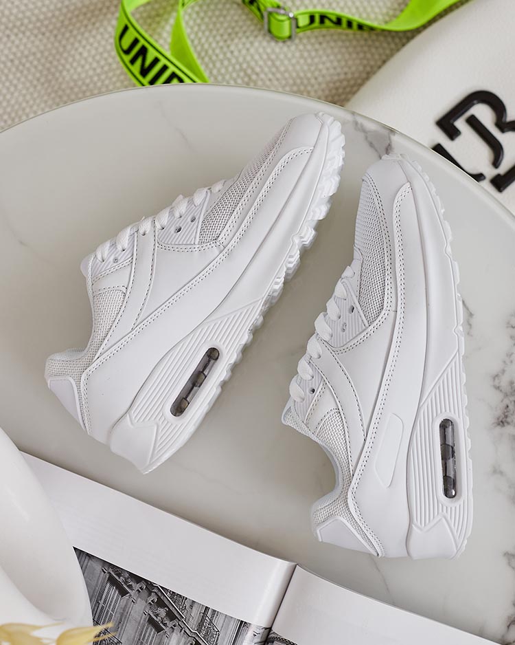 - Stylowe damskie sznurowane buty sportowe wyższej podeszwie. Cholewka wykonana z połączenia skóry ekologicznej oraz materiału tkaninowego. W środku tkaninowa wkładka. Wygodne obuwie na co dzień!