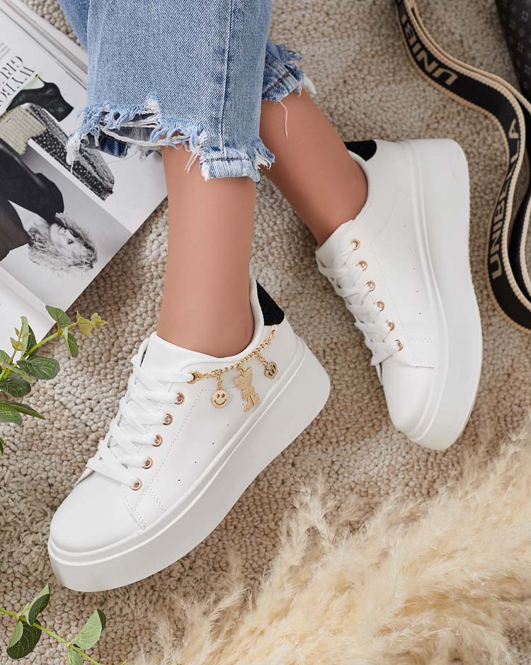 - Dámske tenisky na platforme z ekokože - dokonalá kombinácia štýlu a pohodlia. Model so šnurovaním, má látkovú stielku. Zvršok zdobí prívesok. Ideálne pre aktívnych ľudí!