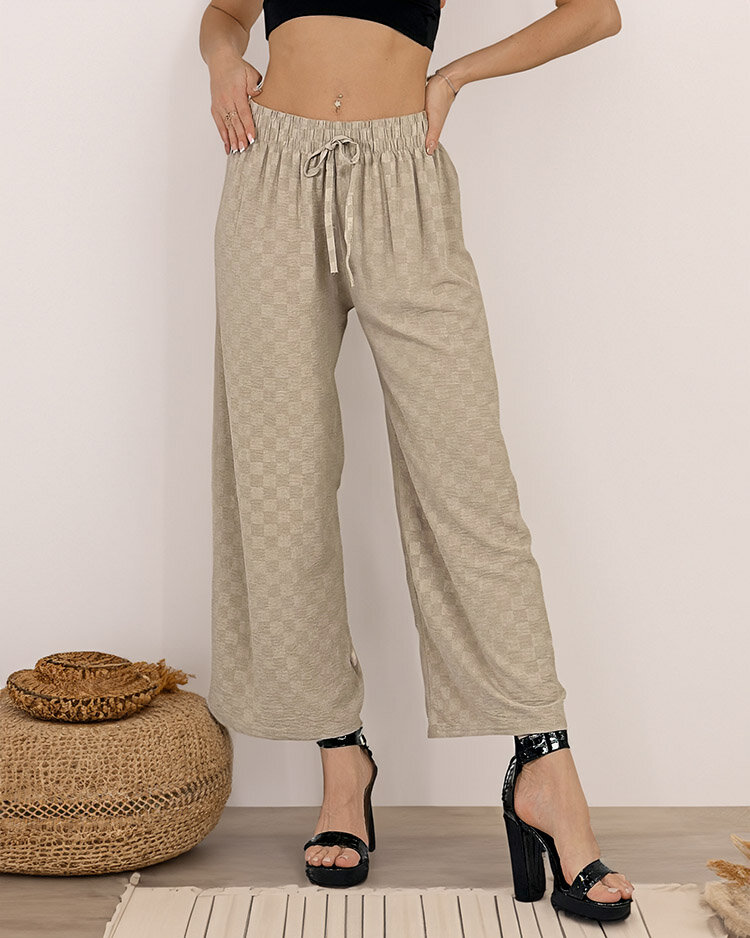 - Fenomenálne široké nohavice z ľahkej kockovanej tkaniny, model má elastický pás a viazanie v páse. Hit tejto sezóny! UPOZORNENIE: Presnosť merania (+/-) 1 cm.