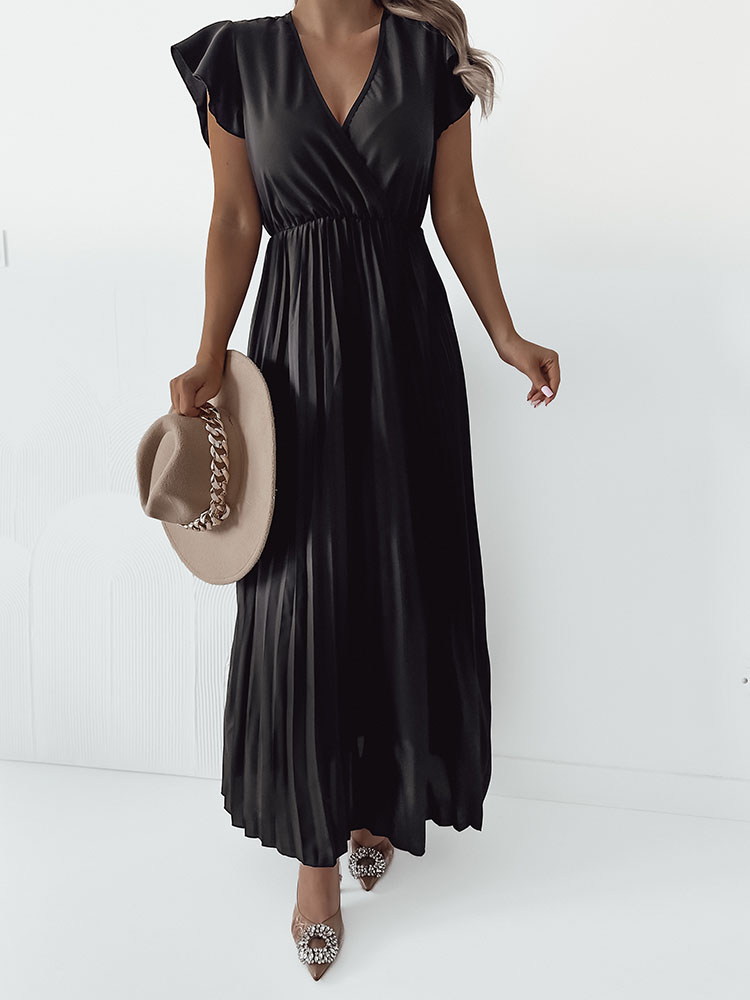 - Jedinečné dámske šaty z ľahkého materiálu. Vo výške pása majú elastický pás. Výrobok má midi dĺžku, krátke rukávy a plisovaný lem. Cíťte leto v tomto modeli!