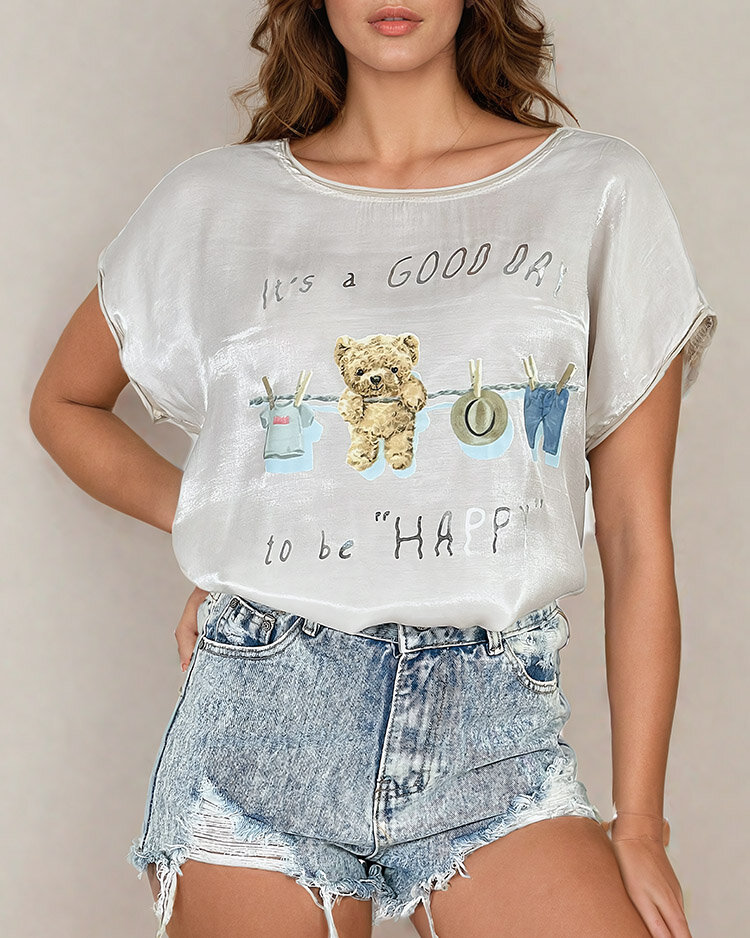 - Dámska blúzka s ozdobnou potlačou. Má krátke rukávy a okrúhly výstrih. Ideálna na každodenné nosenie!