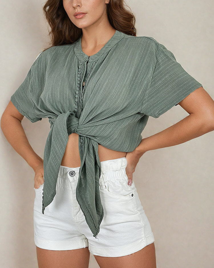- Senzačná dámska košeľa s krátkym rukávom. Model s golierom, zapína sa na gombíky. Musí byť v šatníku každej ženy!