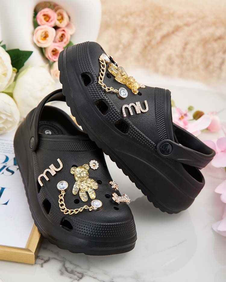- Skvelé ažurové dámske gumené žabky na plochej podrážke. Majú odnímateľné, zirkónové ozdoby na zvršku. Ideálna voľba na dovolenku!
