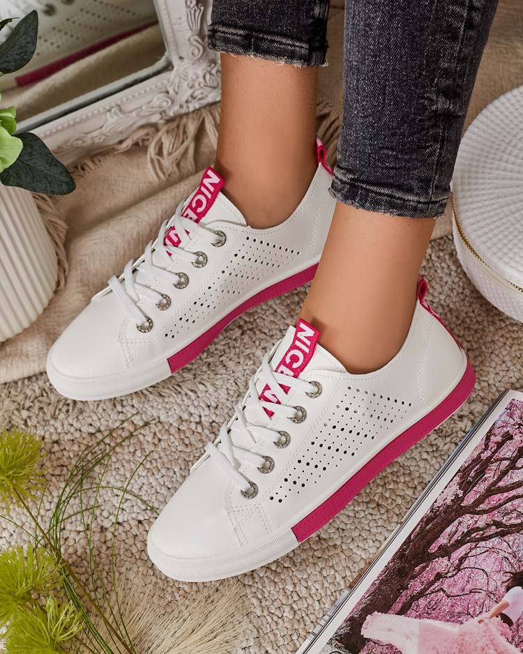 • Ažurové dámske športové tenisky z ekologickej kože. Model na plochej podrážke. Perfektne sa hodia ku každodennej štylizácii!