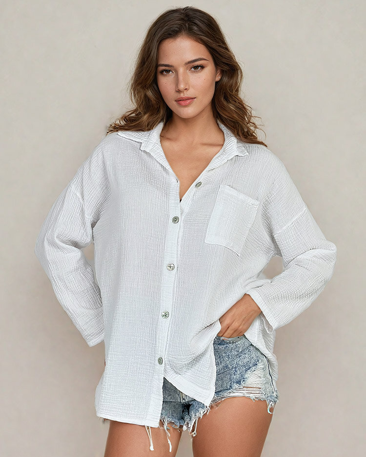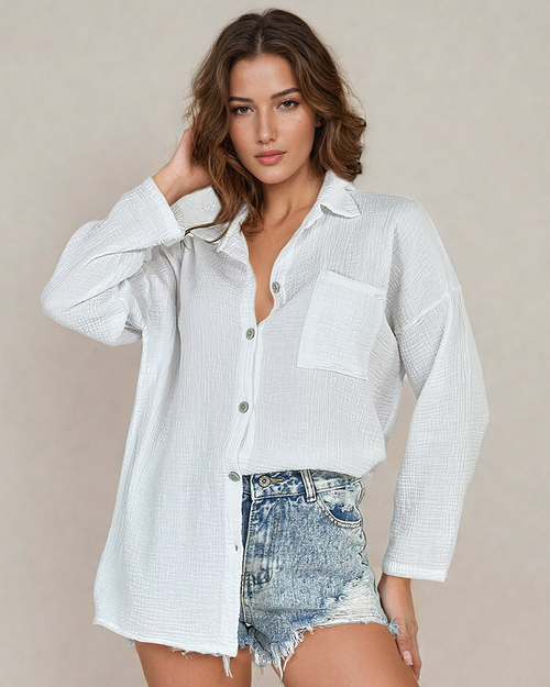 - Senzačná dámska košeľa s 3/4 rukávmi. Model s golierom a elegantným vreckom sa zapína na gombíky. Musí byť v šatníku každej ženy!
