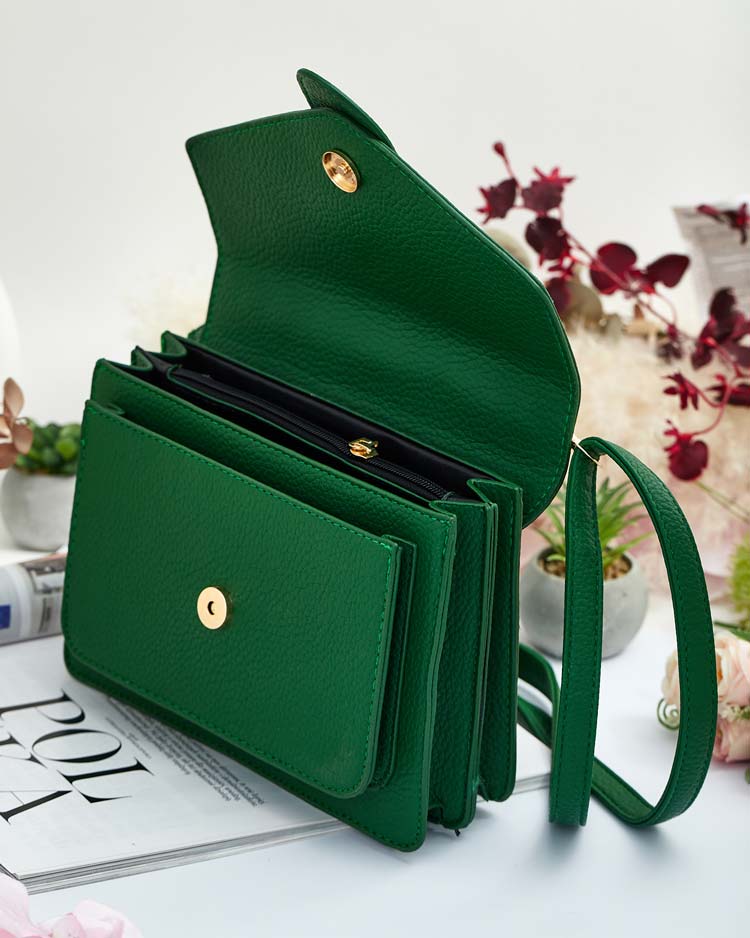 - Malá dámska kabelka s magnetom a zipsom, vyrobená z ekologickej kože. Model má 2 priehradky a 2 vrecká. Okrem toho má nastaviteľný popruh, má aj elegantné držadlo. Ideálna na každodenné používanie!