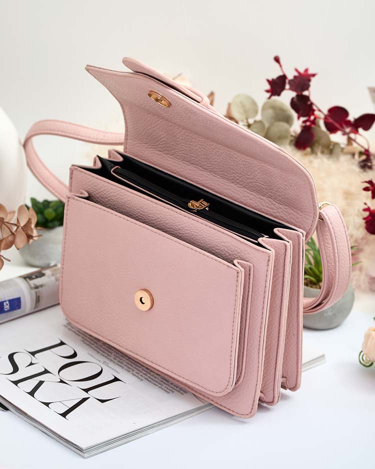 • Malá dámska kabelka s magnetom a zipsom, vyrobená z ekologickej kože. Model má 2 priehradky a 2 vrecká. Okrem toho má nastaviteľný popruh, má aj elegantné držadlo. Ideálna na každodenné používanie!