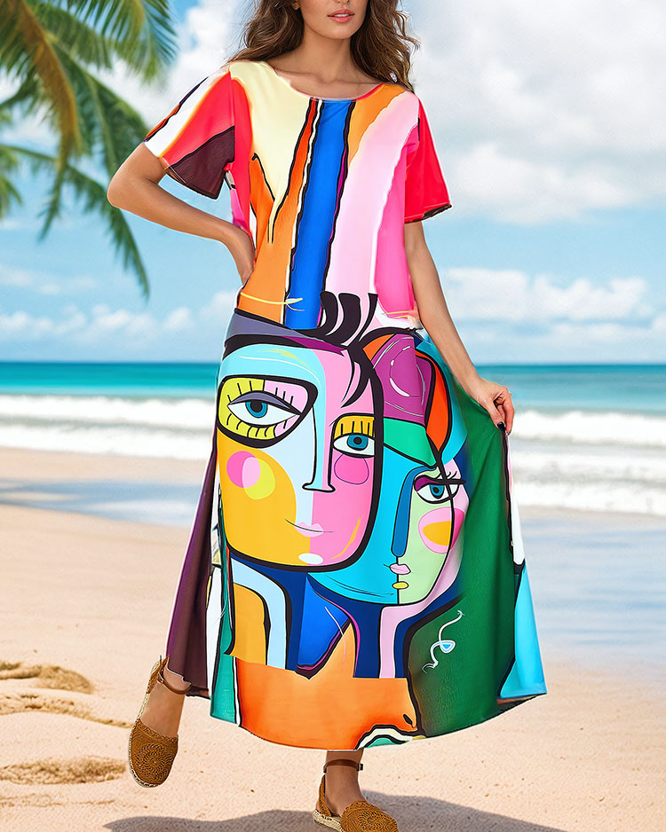 - Dámske midi šaty s okrúhlym výstrihom a krátkymi rukávmi. Vyrobené z príjemného materiálu. Model má ozdobnú potlač. Ideálny základ na každý deň!