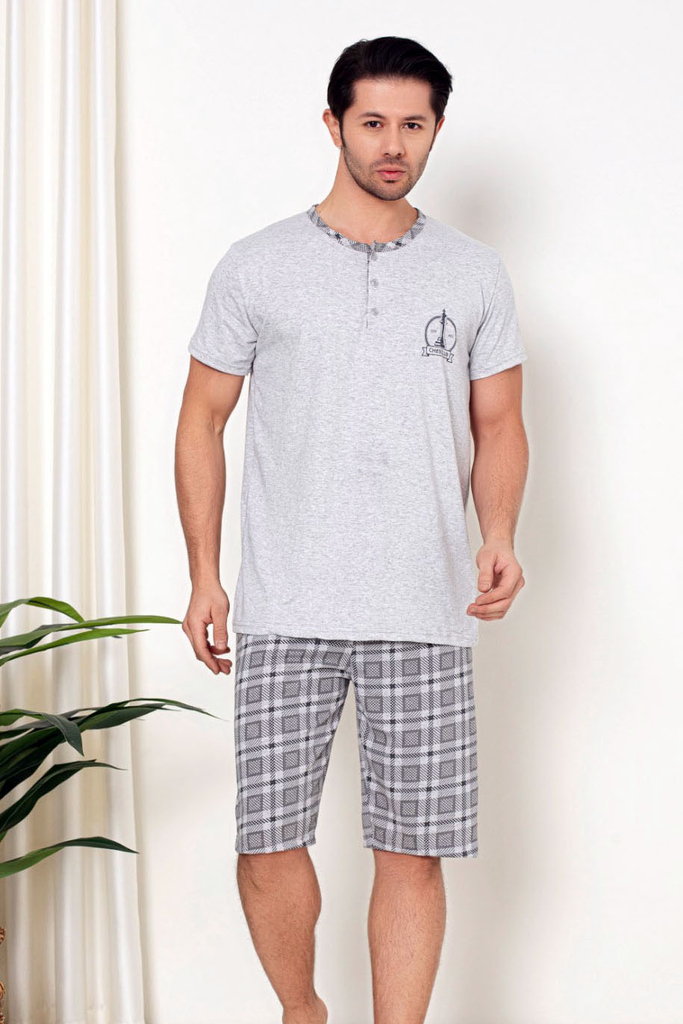 - Pohodlné pánske dvojdielne pyžamo s krátkymi rukávmi a krátkymi nohavicami z bavlnenej tkaniny. Model zdobí potlač. Ideálne na domáce večery! UPOZORNENIE: Presnosť merania (+/-) 1 cm.