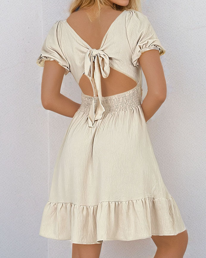 - Ľahké dámske šaty s ozdobnými volánmi a ozdobným viazaním na chrbte, dĺžka po kolená, vyrobené z príjemného materiálu. Model s jednoduchým výstrihom a'la hiszpanka a elastickou šírkou v páse. Noste ich so sandálmi! UPOZORNENIE: Presnosť merania (+/-) 1