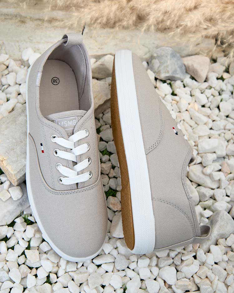 - Ľahké dámske športové tenisky na plochej podrážke. Šnurovací zvršok z tkaniny. Vnútorná stielka z textilného materiálu. Skvelé na letné prechádzky!