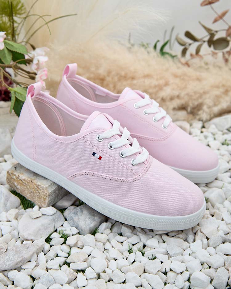 - Ľahké dámske športové tenisky na plochej podrážke. Šnurovací zvršok z tkaniny. Vnútorná stielka z textilného materiálu. Skvelé na letné prechádzky!