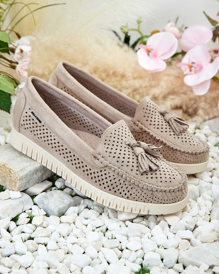 - Ažurové dámske mokasíny na plochej podrážke. Model je vyrobený z ekologickej kože. Vnútorná stielka z prírodnej kože. Perfektný základ na každý deň!