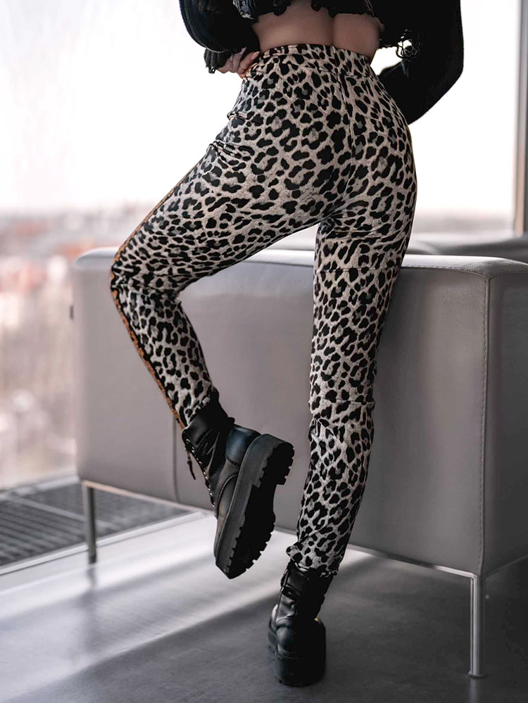 • Štýlové legíny z elastického materiálu. Široký elastický pás poskytuje pohodlie pri nosení. Celé zdobené zvieracou potlačou a zirkónmi. Ideálne na vytváranie štýlových outfitov!