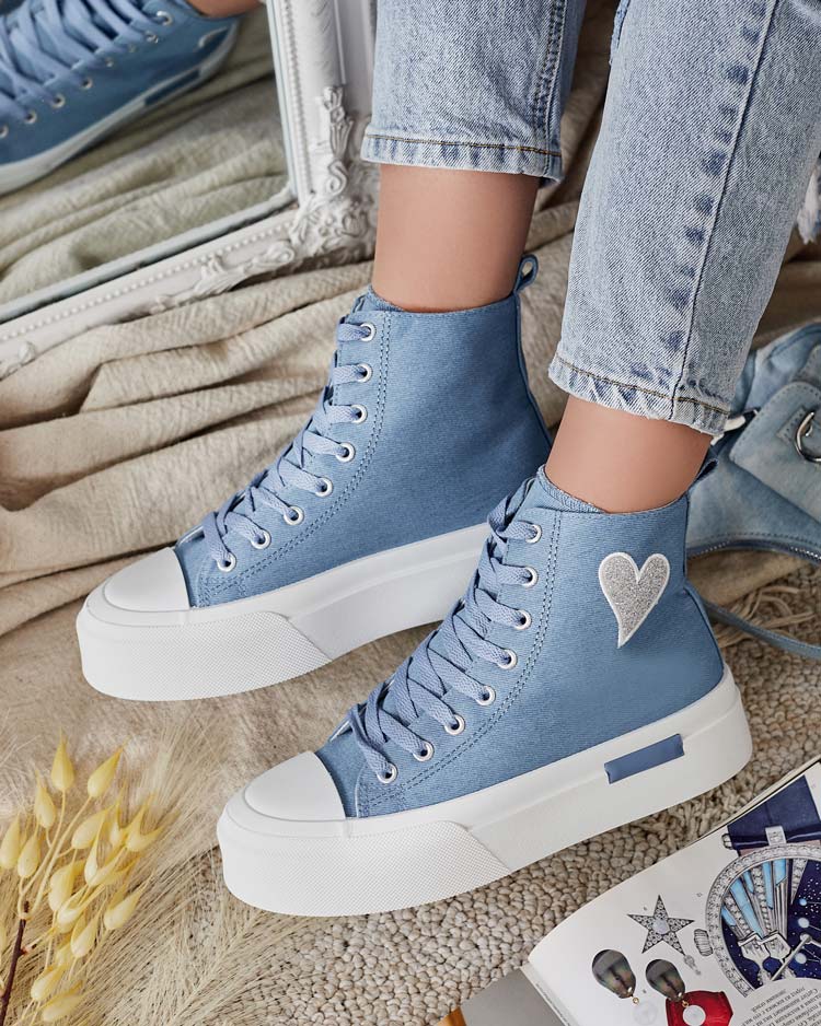 • Štýlové dámske športové tenisky z textilného materiálu, majú ozdobu v tvare srdca. Model na pohodlnej platforme. Zvršok je šnurovací. Skvelé na vytváranie každodenných outfitov!