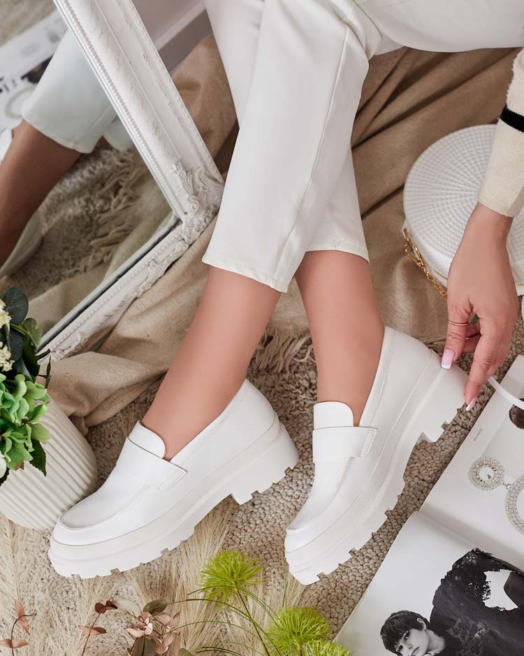 Mokasyny Damskie Aura Białe na Platformie - Eleganckie i Wygodne, Skóra Eko