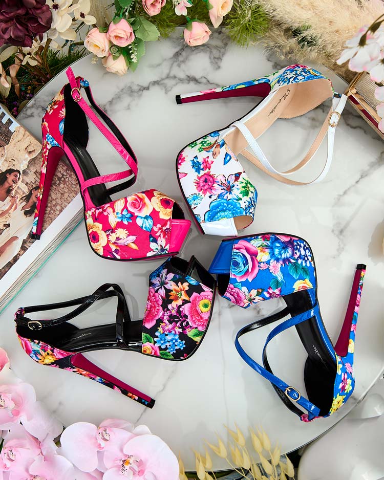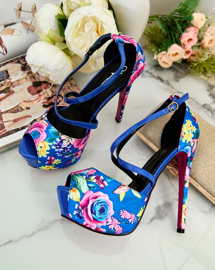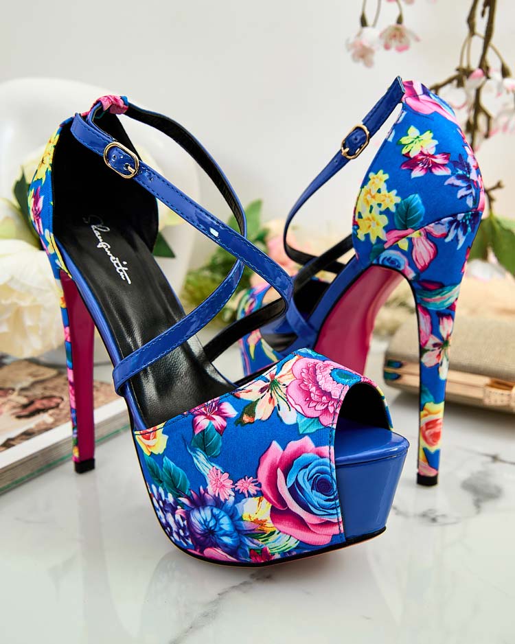 - Originálne dámske lodičky z kombinácie kvetinovej látky a lakovanej kože na vysokom podpätku a platforme, zapínané na pracku s ozdobnými remienkami. Stielka je z ekologickej kože. Spojenie štýlu a pohodlia!