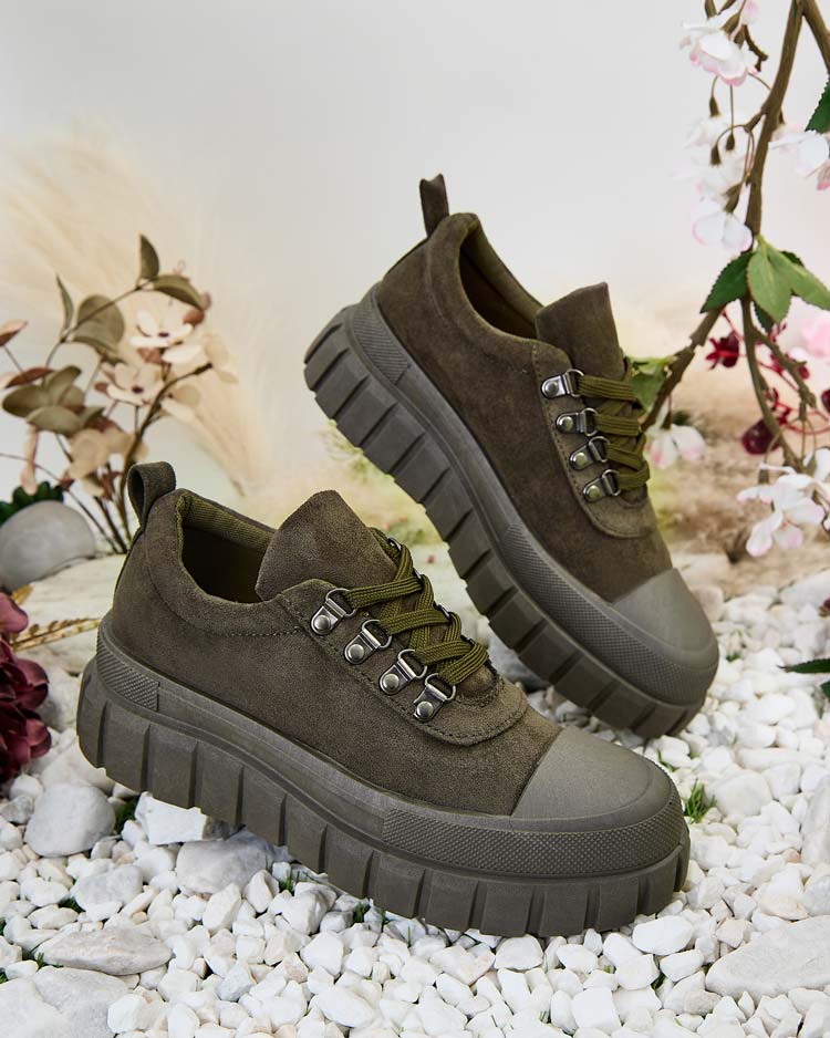 - Štýlová dámska športová obuv z ekologickej semišovej kože a textilnej stielky. Model na pohodlnej podrážke. Skvelé na vytváranie ležérnych outfitov!