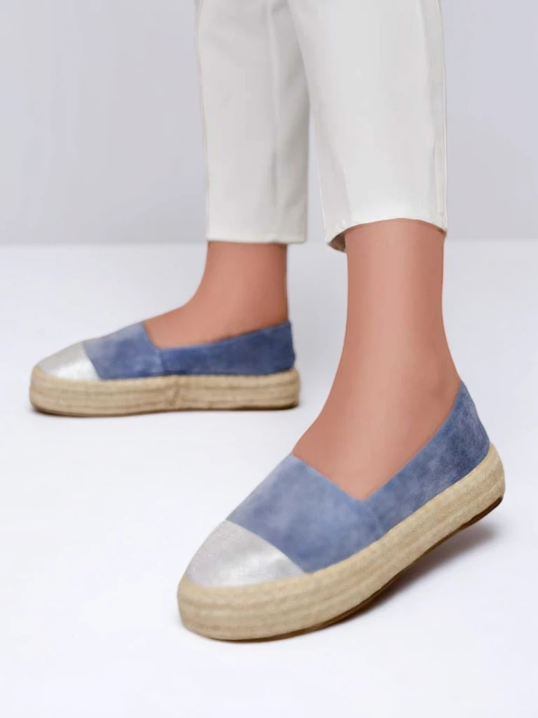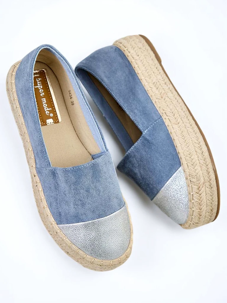 • Jedinečné dámske espadrilky z ekokože a textilnej stielky. Plochá podrážka zdobená jutovou šnúrkou poskytuje pohodlie. Model na nazúvanie. Perfektný doplnok k letným štýlom!