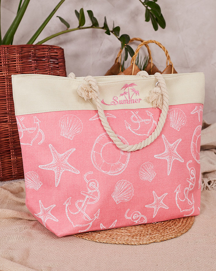 - Veľká dámska taška z látky s dovolenkovým vzorom. Model má 1 priehradku a zapína sa na zips. Ideálna na každý deň alebo na pláž!
