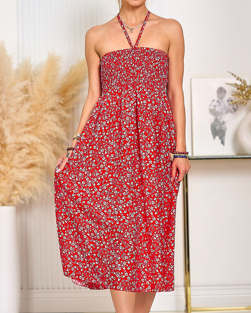 - Jedinečné vzdušné šaty po kolená. Model bez ramienok, má elastický pás cez prsia a zaväzuje sa za krkom. Ideálna voľba na letné dni! UPOZORNENIE: Presnosť merania (+/-) 1 cm.